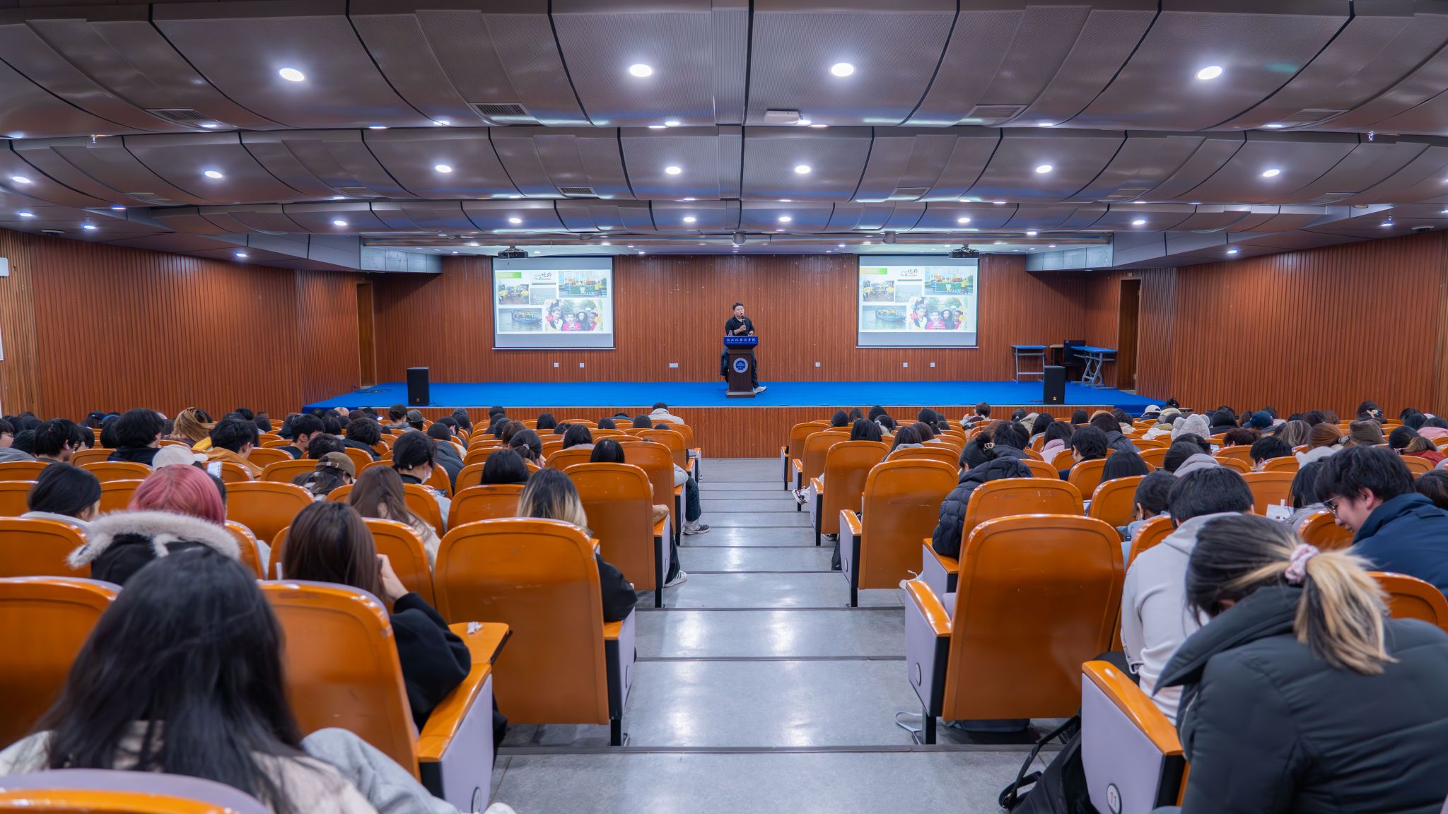 12月16日下午,伟德国际1946源于英国博文堂2楼座无虚席,义乌同悦社工负责人陈峰受邀带来一场主题为“国际性社区治理的义乌实践”的思政讲座。350名来自多语种专业、国际贸易、会展等专业的大二学子,沉浸式聆听这座“联合国社区”如何以包容破解文化差异,用创新搭建共治桥梁,在真实案例中深化对“人类命运共同体”的理解与认同。