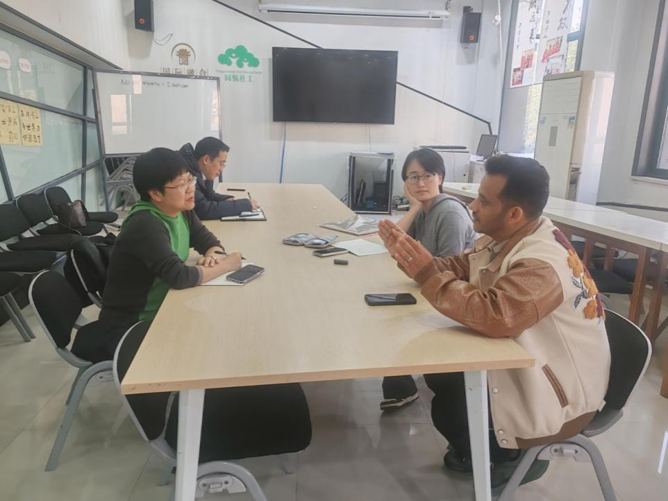 下午,调研组来到素有“联合国社区”之称的鸡鸣山社区,与来自也门的外商吴傲山进行访谈,吴傲山在义乌生活多年,不仅事业有成,更深度参与社区公共事务,是义乌外籍人士融入中国社会的典型代表。他用流利的中文讲述了自己在义乌创业、生活的点滴,以及作为外籍调解员参与社区治理的独特经历。通过吴傲山的视角,调研教师深刻感受到了义乌作为“世界小商品之都”的开放包容,以及“一带一路”倡议在民心相通层面的具象化成果。